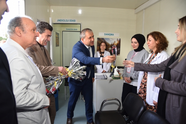 Kaymakam Demir ve Başhekim Yamanoğlu kadın sağlık çalışanlarının “8 Mart Dünya Kadınlar Günü” nü kutladı, günün anısına gül verdi.