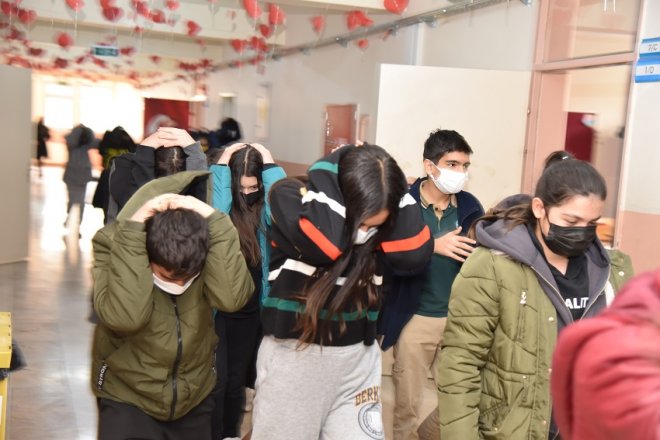 Karşıyaka Selçuk Yaşar Ortaokulu’ndaki tatbikata, Karşıyaka Kaymakamı Ali Rıza Çalışır, Emniyet Müdürü Ercan Kaçanoğlu, İlçe Jandarma Komutanı Ahmet Karaman ve İlçe Milli Eğitim Müdürü Mustafa İslamoğlu da izledi.