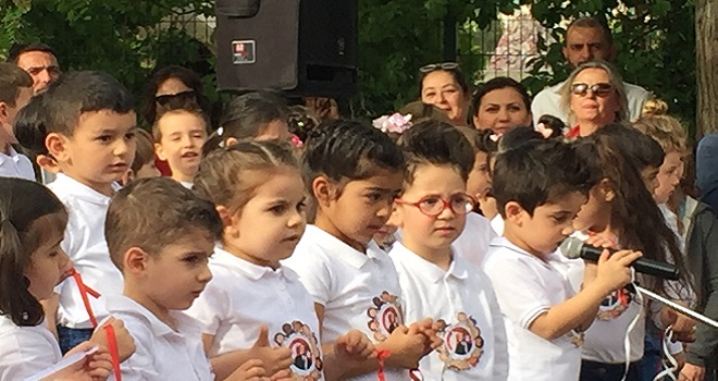 Öğrenci velilerinin de katıldığı 23 Nisan etkinlikleri sınıfların Türkçe ve İngilizce şarkı söylemeleriyle başladı. Ardından 10 Yıl Marşı velilerle birlikte söylendi.