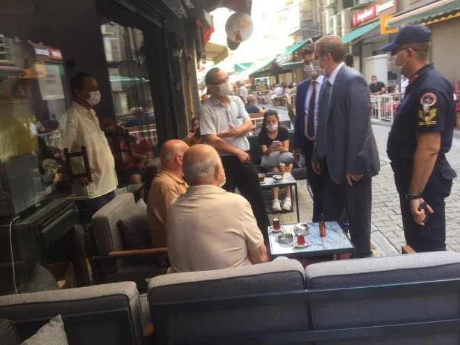 "Sağlık için, hepimiz için" uygulamasını sahaya çıkarak başarılı bir şekilde yöneten Karşıyaka Kaymakamı Ali Rıza Çalışır sabah başlattığı denetimlerini gün boyu Karşıyaka'nın dört bir yanında sürdürdü. Karşıyaka Çarşısı başta olmak üzere otobüsler, tramvay, taksiler, dükkanlar ve AVM'ler sıkı bir şekilde denetlendi.