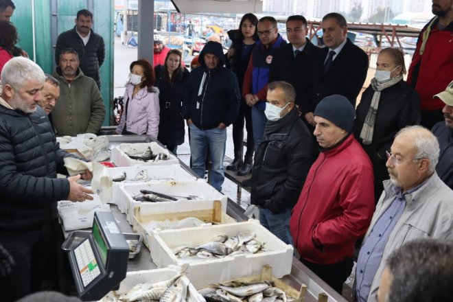 Karşıyaka Kaymakamı Özkan Demir, Karşıyaka İlçe Tarım ve Orman Müdürü Bülent Üngür ile birlikte Mavişehir Balıkçı Barınağı'na giderek burada bulunan Şemikler Su Ürünleri Kooperatifini ziyaret etti, balıkçıların sorunlarını dinleyen Kaymakam Demir, balık mezatına da baştan sona izledi.