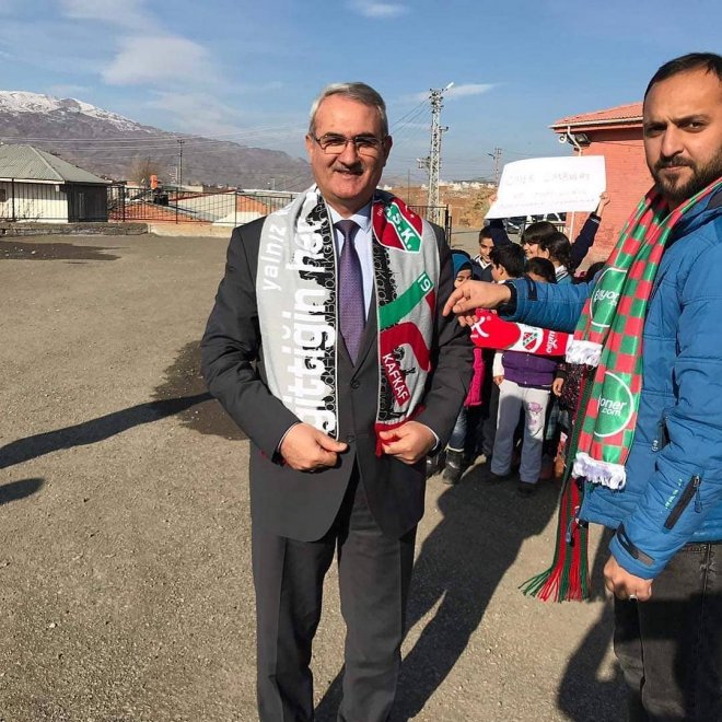 Yeşil kırmızılıların gönderdiği malzemeler Tuzluca Kaymakam Yardımcısı ve İlçe Spor Müdürü katılımı ile dağıtıldı. Yardımlar ile sevinen öğrenciler de Kaf Kaf çekerek teşekkür ettiler.