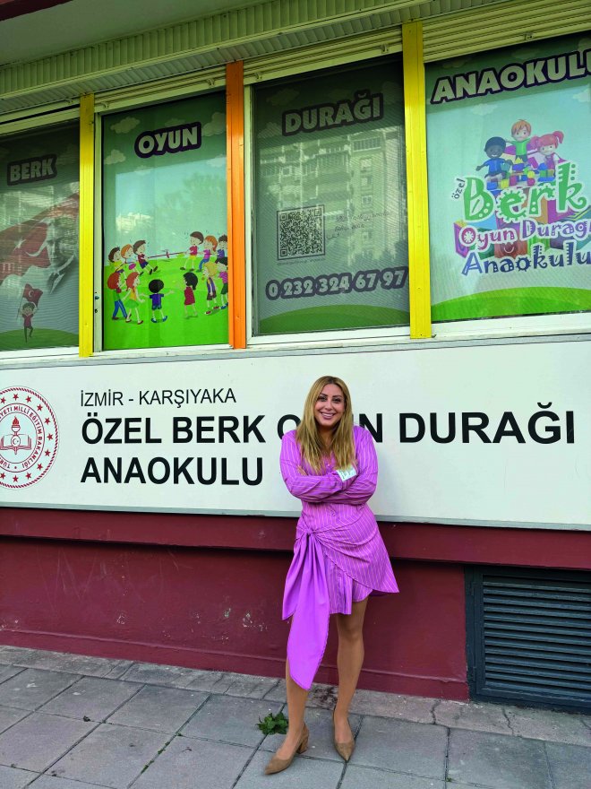 Uludağ Üniversitesi Çocuk Gelişimi bölümünden mezun olduktan sonra, ücretli öğretmenlik ve franchise kurumlarda okul müdürlüğü yaptım. Daha sonra sosyoloji ve sosyal hizmet bölümlerini okudum. Mesleğimin beşinci yılında uzman eğitici olarak devam ederken anne oldum ve başka bir bakış açısıyla olayları görmeye başladım. Çocuklar ve kendi çocuğum için daha faydalı ama daha doğal neler yapabilirim derken bölümüm ile alakalı on sekiz eğitim ve dört unvan aldım. Oyun terapistliği, yaşam koçluğu, pedagojik testörlük gibi… Bu süreçte oğlum sürekli yanımdaydı ve onu anaokullarında büyüttüm. Annelere konfor alanı yaratmak istedim. Güvenli ve ev sıcaklığında bir kurum açmaya karar verdim. 2016 yılında İzmir’e yerleştim ve Berk Oyun Durağı Anaokulu ’nu açtım.