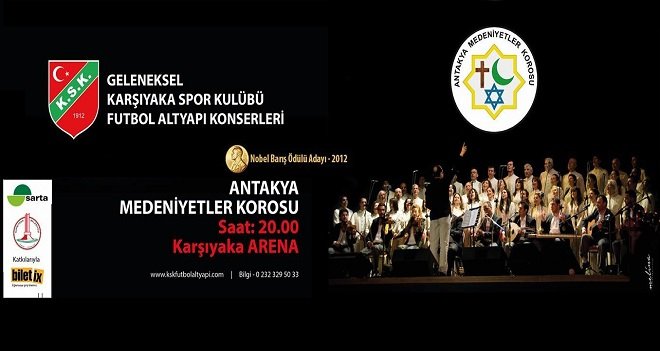 Karşıyaka Spor Salonu'nda saat 20.00'de başlayacak olan 2012 Nobel Barış adayı olan Antakya Medeniyetler Korosu Karşıyakalılar'a doyumsuz bir konser verecek.