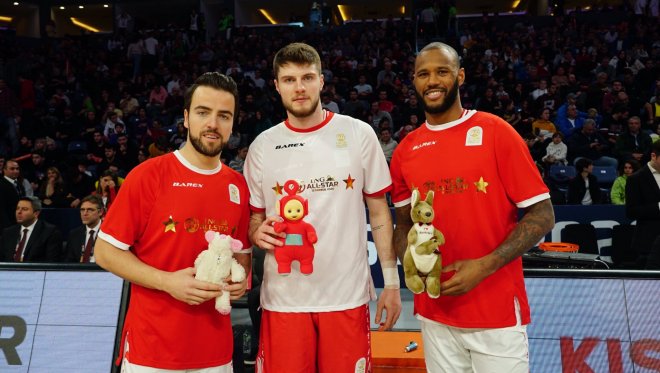 Yeşil Kırmızılılar LÖSEV'e Beyaz Takım'ın istatistikleri kadar (126 sayı + 36 ribaund + 35 asist + 8 top çalma) toplam 205 oyuncak bağışında bulundu.