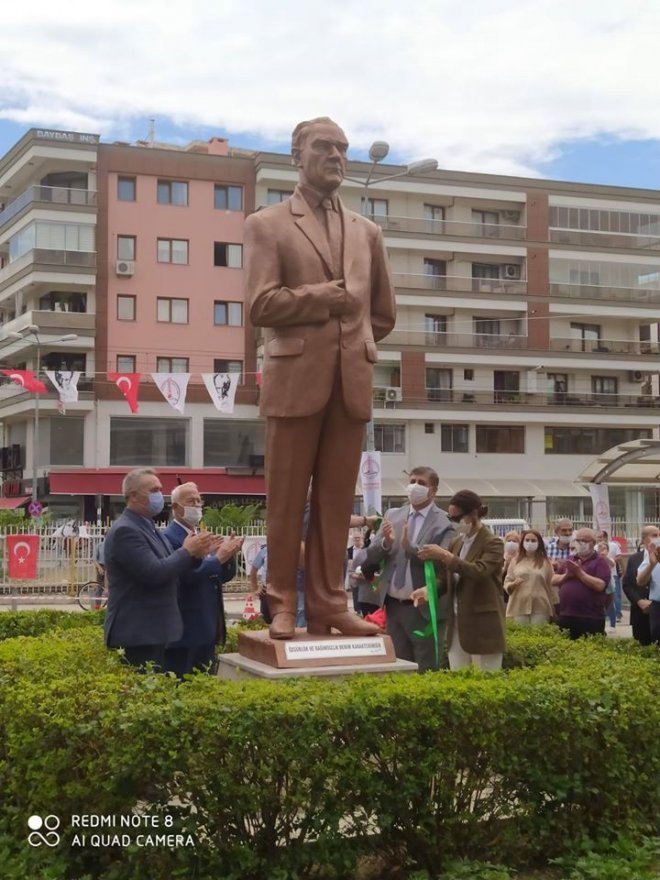 Karşıyaka Belediye Başkanı Dr. Cemil Tugay, CHP Karşıyaka İlçe Başkanı Serdar Koç ile partililer ve vatandaşların katıldığı törenle Atatürk Büstünün yerine konan Atatürk Heykelinin açılışı için bir tören yapıldı.