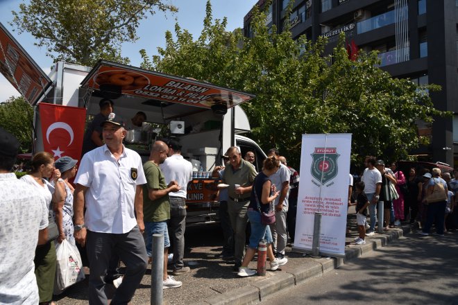 Karşıyaka İZBAN istasyonu önündeki alanda halka tavuk, pilav ve ayran dağıtıldı.