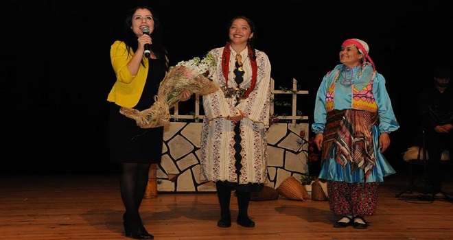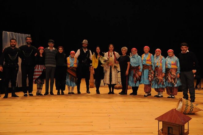 Karşıyaka Halk Eğitim Merkezi Müdürü Ebru Yücel, "Sevdaluk" adlı müzikal gösteriye katıldı ve oyun sonunda tüm sanatçıları kutladı. .