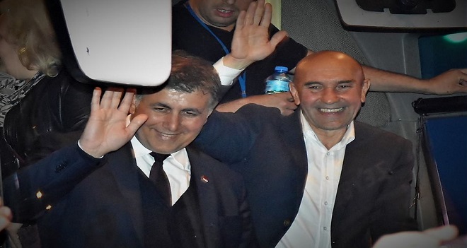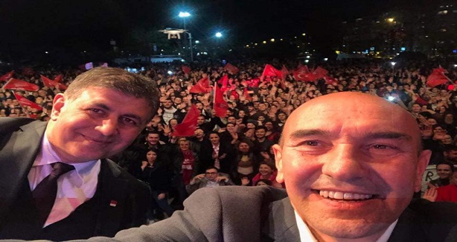 Karşıyakalıların Karşıyaka Çarşıda büyük sevgi gösterisinde bulunduğu CHP İzmir Büyükşehir Belediye Başkan adayı Tunç Soyer ve CHP Karşıyaka Belediye Başkan adayı Dr. Cemil Tugay'a CHP İl Başkanı Deniz Yücel, Karşıyaka Belediye Başkanı Hüseyin Mutlu Akpınar, CHP Karşıyaka İlçe Başkanı Uğur Yıldırım, CHP İzmir il ve Karşıyaka ilçe örgütü eşlik etti.