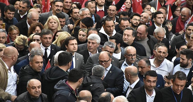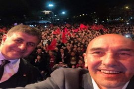 Karşıyaka İskele önünde son bulan yürüyüşten sonra Soyer ve Tugay Karşıyakalılara hitap ettiler.