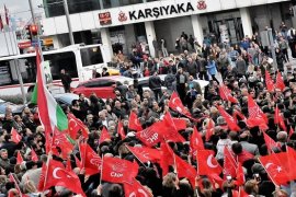 Ellerinde Ay Yıldızlı Türk Bayrağımızı taşıyan yüzlerce Karşıyakalı her iki adaya da büyük sevgi gösterisinde bulundu. İZBAN Karşıyaka İstasyonu önünden başlayan, çarşı boyunca devam eden yürüyüşte Karşıyakalılar büyük sevgi gösterisinde bulundu.