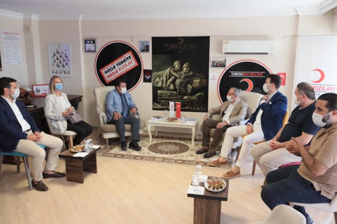 Beraberinde AK Parti İzmir İl Yönetiminden bazı yöneticiler ve Ak Parti Karşıyaka İlçe Başkanı İsmail Çiftçioğlu ve AK Parti Karşıyaka İlçe Yöneticileriyle birlikte Türk Kızılay Karşıyaka Şubesine gelen Kerem Ali Sürekli, burada kendisini karşılayan Türk Kızılay Karşıyaka Şube Başkanı Kamil Karadeniz ile sohbet etti ve çalışmalarla ilgili bilgi aldı. Başarılı çalışmaları nedeniyle kendisini kutlayan Ak Parti İzmir İl Başkanı Kerem Ali Sürekli'ye teşekkür eden Türk Kızılay Karşıyaka Şube Başkanı Kamil Karadeniz, Kerem Ali Sürekli'ye anı plaketi takdim etti.