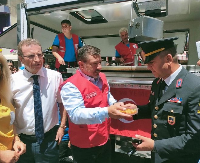 Ayrıca, Karşıyaka Kaymakamlığı ve Türk Kızılay Karşıyaka Şube Başkanlığı’nın düzenlemiş olduğu 15 Temmuz Demokrasi ve Milli Birlik Günü programları kapsamında Kemalpaşa Camii’sinde Cuma namazı öncesi mevlid ve namaz sonrası camii önünde Şehitlerimiz adına 2000 kişilik lokma ve lokum halkımıza ikram edilmiştir.”