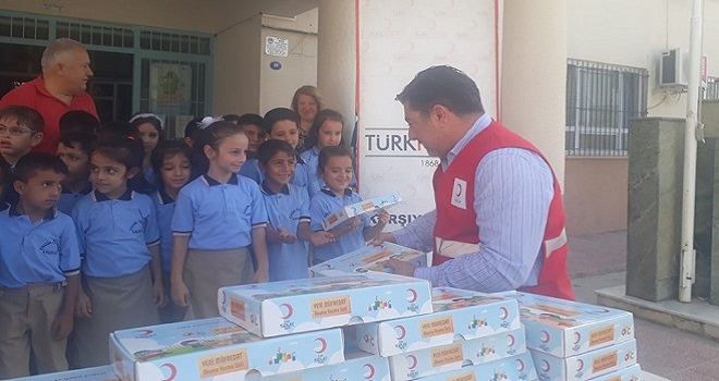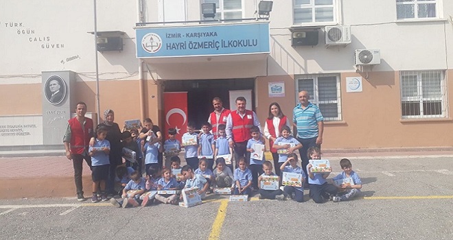 Türk Kızılayı Karşıyaka Şubesi Başikanı Kamil Karadeniz ve yöneticiler bugün 6 okulda 397 eğitim gören öğrencilere okuma seti hediye etti.
