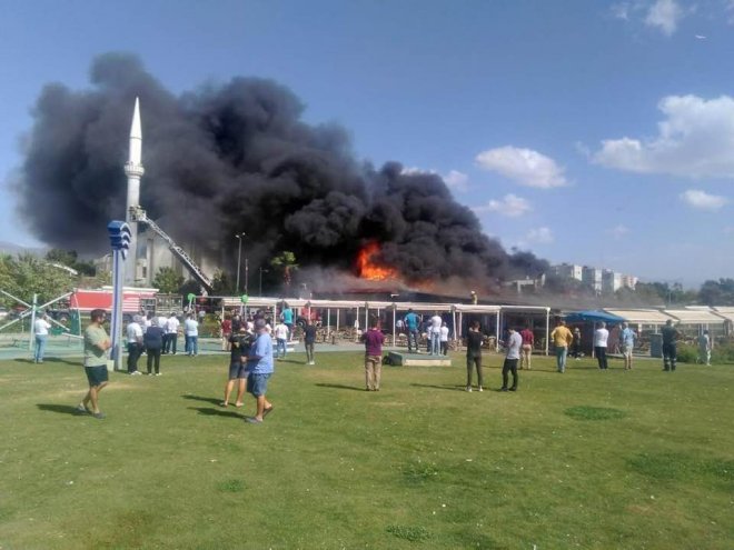 Bostanlı'da bulunan kafenin baca kısmında, saat 14.30 sıralarında, henüz belirlenemeyen nedenle yangın başladı. Kısa sürede büyüyen alevler, çatıyı sardı. Müşteriler, panikle kafeden çıkarken, çalışanlar da itfaiyeye haber verdi. İhbarla gelen itfaiye ekipleri, hemen müdahaleye başlayıp, alevleri söndürdü. Kafede hasara neden olan yangının çıkış nedeni araştırılıyor.