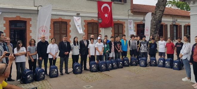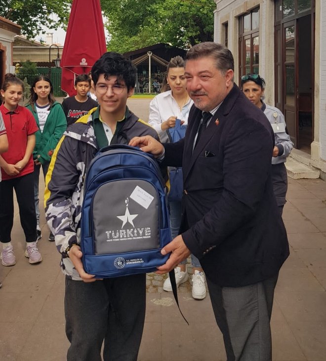 Sporun tenis, okçuluk, basketbol, voleybol, bisiklet, karate, atletizm, futbol dallarında yetenek taramasında başarılı olan 34 sporcuya ödül olarak verilen çantada ayakkabı, eşofman, havlu gibi spor malzemeleri bulunuyordu.
