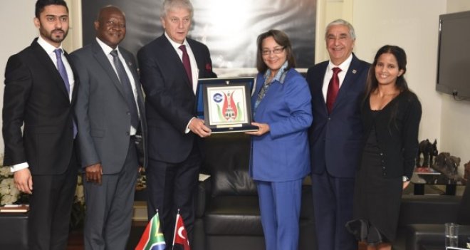 Güney Afrika Ankara Büyükelçisi Pule Isaac Malefane’nin de katılımlarıyla gerçekleşen ziyarette Güney Afrika Cumhuriyeti Fahri Başkonsolosu Tamer Taşkın da hazır bulundu. EBSO Başkanı Ender Yorgancılar, Güney Afrika Cumhuriyeti’nin sahip olduğu zengin hammadde kaynakları, gelişmiş altyapısı, tekstil, turizm, otomotiv ve tarım gibi önde gelen sektörlerinin yanı sıra diğer ülkelerle olan yakın ilişkileri nedeniyle, kıtanın ticari merkezi konumunda bulunduğunu kaydetti. İki ülke arasında ticaret hacminin 1. 4 milyar doları bulduğunu ancak bunu yeterli görmediklerini ifade eden Yorgancılar, Türkiye’nin coğrafi avantajı ve İzmir’in konumuna dikkat çekerek, İzmir’in Afrika kıtası için lojistik üs olarak değerlendirilebileceğini kaydetti.