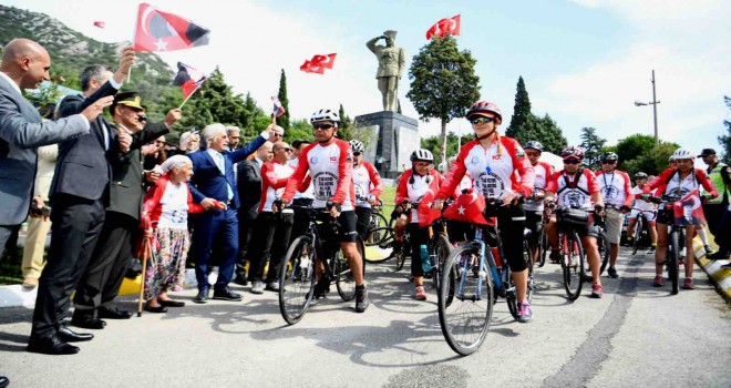 Afyonkarahisar’dan yola çıkan Cumhuriyet sevdalısı bisikletçiler de Belkahve’deki törene katıldı. Yol boyunca şehitliklerden aldıkları toprakları başta gaziler olmak üzere vatandaşlara dağıtan bisikletçiler, törenin ardından düşmanın denize döküldüğü kent merkezine doğru yollarına devam etti.