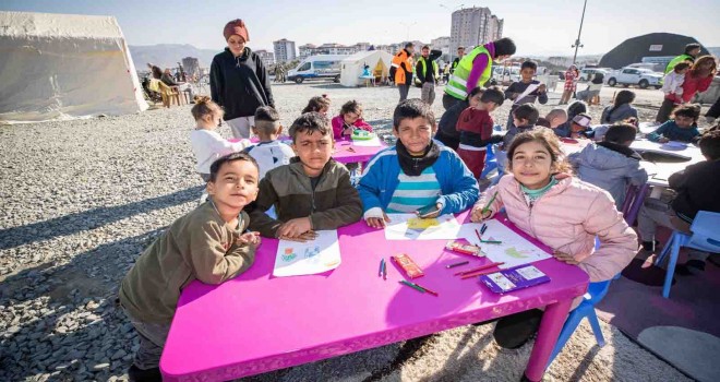 Depremin ilk gününden itibaren psikososyal süreç ile ilgili çalışmalara başladıklarının altını önemle çizen İzmir Büyükşehir Belediyesi Sosyal Projeler Dairesi Başkanı Anıl Kaçar, “İzmir’de oluşturduğumuz ‘Psikososyal Destek Ağı’nı doğrudan deprem noktalarına da ulaştırdık. Alandaki tüm çadırları ziyaret ederek saha taraması yapıyoruz. Bu çalışmayı öncelikli olarak kadın ve çocukların süreci kolay atlatmasını sağlamak üzere yapıyoruz” diye konuştu. İzmir’de Masal Evi’nde ne yapılıyorsa burada da çalışmaların aynı şekilde yürütüldüğünü söyleyen Anıl Kaçar, “Uzmanlarımızla birlikte deprem bölgesinde sahadayız. Çocuklarımızın bilişsel, ruhsal dünyasına katkıda bulunuyoruz. Masal Evleri’yle depremde yara almış çocuklarımızın yüzlerini güldürebiliyoruz. Burada çocuklar hem yeni bilgiler öğreniyor hem de oyun oynayıp eğleniyor” dedi.