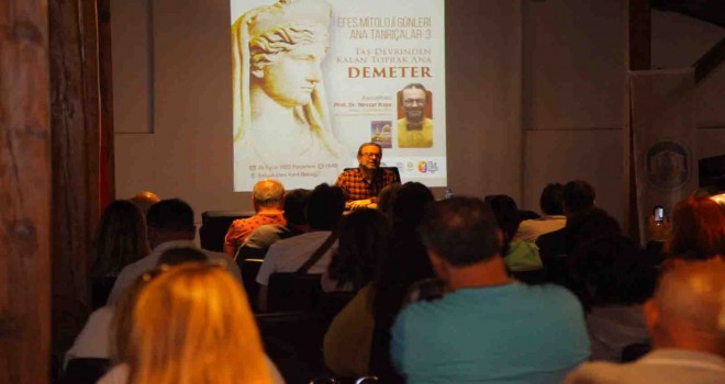 Dokuz Eylül Üniversitesi Karşılaştırmalı Edebiyat Bölümü Öğretim Üyesi Prof. Dr. Nevzat Kaya Selçuk Efes Kent Belleği’nde mitoloji severlerle bu kez  “Taş Devrinden Kalan Toprak Ana Demeter” konulu söyleşide bir araya geldi.