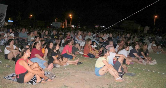Sıcak bir Foça akşamında serin bir ortamda eskilerin açık hava sinemalarını andıran görüntüler oluşturdular.