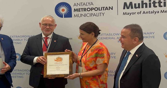 Antalya’da gerçekleşen Uluslararası Sakin Kentler Birliği (Cittaslow) Olağanüstü Türkiye Genel Kuruluna katılan Foça Belediye Başkanı Saniye Bora Fıçı, Avrupa Kültür Rotasına dahil edilmesi amacıyla Avrupa Konseyi’ne sunulan Foçalıların Yolculuğu ‘‘Journey of Phokaians’’ Projesinin kazandığı ödülü teslim aldı.