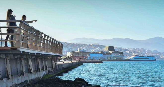 Kent kıyılarının daha etkin, verimli ve işlevsel kullanımını sağlayacak tasarımları "İzmir Deniz Kıyı Tasarım” projesi ile hayata geçiren İzmir Büyükşehir Belediyesi, son olarak Konak Vapur İskelesi’nin yakınlarındaki seyir terasını kentlilerin kullanımına sundu. Ahşap malzeme ağırlıklı olarak kıyı estetiği ile uyumlu tasarlanan mekan, seyir terası 161 metrekarelik alana sahip.