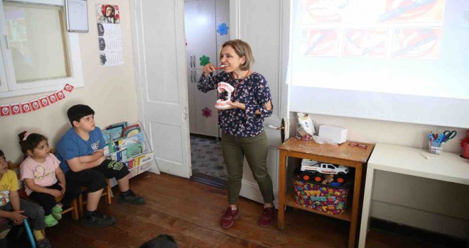 Konak Belediyesi’nin Diş Hekimleri Odası, İzmir Kadın Kuruluşları Birliği (İKKB) ve Kordon Soroptimist Kulübüyle birlikte hazırladığı proje kapsamında 3-6 yaş grubundaki çocuklara diş sağlığı eğitimi verildi. Beştepeler, Agora ve Toros semt merkezlerinde düzenlenen programa, bu semt merkezlerinde oyun odasına devam eden çocuklar katıldı. Oldukça eğlenceli geçen eğitim kapsamında çocuklar doğru şekilde diş fırçalamayı, günde kaç kez diş fırçalanacağını, diş fırçası ve diş macununu nasıl kullanacaklarını öğrendi.