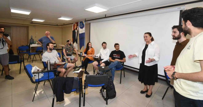 Peter Hussey ve Furkan Hergül,İzmir Kent Konseyi Başkanı Nilay Kökkılınç'a,İzmir Kent Konseyi'nin ev sahipliğinden ve desteklerinden dolayı teşekkür belgesi taktim etti.