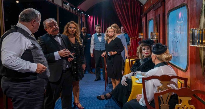 1933 yılında Agatha Christie’nin İstanbul’daki tarihi Pera Palas Oteli’nde kaleme aldığı, onlarca dile çevrilen ve sinemaya defalarca uyarlanan bu kült eser, Atilla Şendil ve Savaş Özdural’ın rejisiyle sahneye taşınıyor. Hercule Poirot karakterine Atilla Şendil hayat verirken, güçlü oyuncu kadrosunda Savaş Özdural, Romina Özipekçi, Özdemir Çiftçioğlu, Pelin Turancı, Hakan Akın, Ozan Dağara, Oya İnci, Ebru Karanfilci, Can Esendal, Ilgın Angın, Fatih Özacun ve Kerem Tataroğlu yer alıyor.