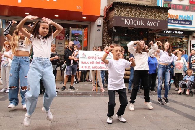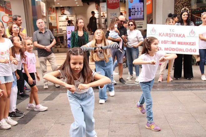 Dünya Sevgi Günü Haftasının ikinci gününü Modern Dansçı Çocukların gösterisi ile kutlayan Karşıyaka Halk Eğitim Merkezi yine büyük takdir topladı. Karşıyaka Halk Eğitim Merkezi ve ASO Müdürlüğü Modern Dans Öğretmenlerinden Kübra Nur Gündüz ve Selena Bozdağ'ın eğitim verdiği dansçı çocuklar, birbirinden güzel danslar sahneledi, vatandaşların büyük coşkusu ve alkışlarıyla izlendi. Karşıyaka Halk Eğitim Merkezi Dansçı Çocukları, vatandaşlarımız tarafından takdir edildi.