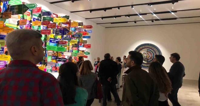 İzmir Büyükşehir Belediyesi’nin ev sahipliğinde Kültüpark Atlas Pavyonu’nda açılan ressam Ahmet Güneştekin’in “Gâvur Mahallesi” sergisine yoğun ilgi sürüyor. 3 Kasım’da açılan sergiyi bugüne dek 300 bin kişi ziyaret etti. Serginin hafta sonları günlük ziyaretçi sayısı ise 10 binin üzerinde. Ahmet Güneştekin dünyada güncel solo sergileri, günlük 10 binin üzerinde ziyaretçinin gezmesinin alışıldık bir durum olmadığını söyleyerek, sanat fuarları, bienaller ve müzeler dâhil pek çok kurumun ve sanatçının büyük organizasyonlarının dahil bu sayılara ulaşılmasının güç olduğunu dile getirdi.