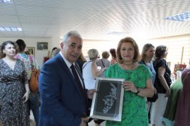 Açılıştan sonra protokol, usta öğreticilerin ve kursiyerlerin gerçekleştirdiği sergiyi gezdi. Sergide Takı Tasarımda Karşıyaka Halk Eğitimi Merkezi Usta Öğreticilerinden Arzu Çeşmeci, Gümüş Takı İşlemeciliğinde Ceyda Şakar, Cam Mozaik Sanatında Şükriye Işıkal ve Kumaş Boyama Sergisinin başında bulunan Beray Göllü bilgi verdi.