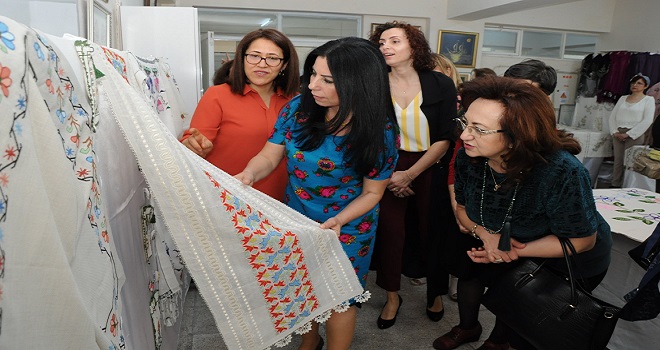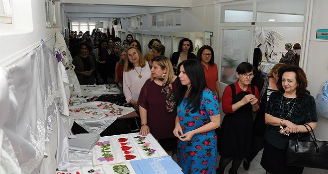 Karşıyaka Halk Eğitim Merkezi'nin merkez binasındaki Nakış ve Mefruşat sergisi kurumun mefruşat ve nakış öğretmenleri Cennet Genç, Nuşin Nuşin, Pelin Sarıkahyaoğlu ile kursiyerlerinin eserlerinden oluştu.