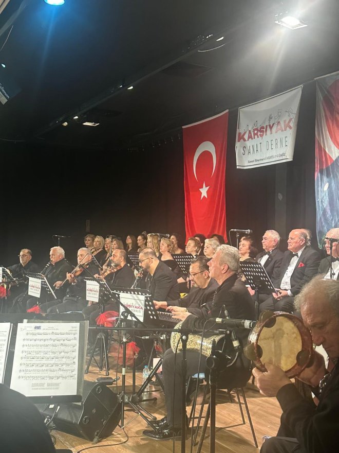 Karşıyaka Sanat Derneği Türk Sanat Müziği Korosu’nun 2026 yılının ilk konseri kapalı gişe, ayakta izlendi… Salonun dolu olmasına karşın giren ve ayakta izleyen seyircilerden adım atacak yer kalmadı.