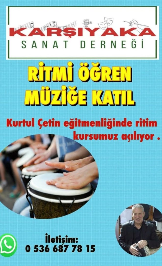 Sanatın her dalında, özellikle de müzik konusunda önemli rol üstlenen Karşıyaka Sanat Derneği Türk Sanat Müziği, Popüler Müzik, Çocuk Korosu’ndan sonra bu kez de ritm grubu kurdu. Ülkemizin önemli ritim saz ustası olan Kurtul Çetin yönetiminde çalışmalarına Bostanlı Gode Cengiz Spor Tesislerinde başlayan grup bundan böyle her Çarşamba çalışmalarını sürdürecek.