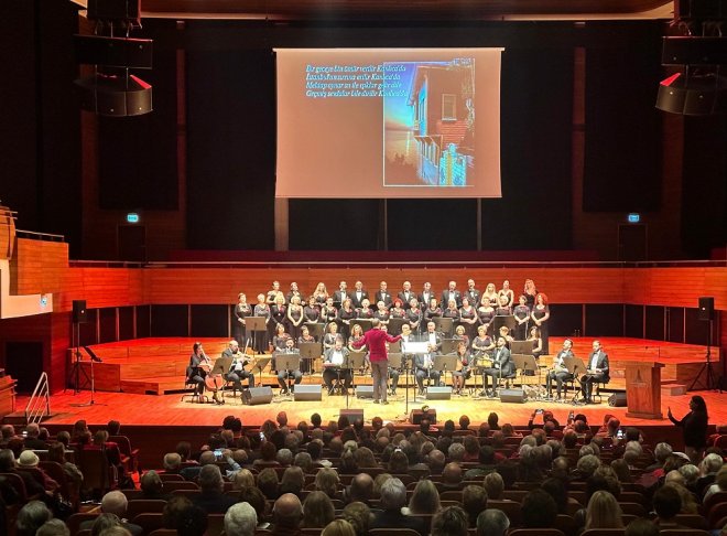 Ahmed Adnan Saygun Sanat Merkezi’nde Tülov Vakfı Türk Müziği Korosu ile gerçekleştirilen İzmirli bestekar büyük usta “Avni Anıl’ı Anma Konserinde 1200 kişilik salonda yer bulamayanlar konseri ayakta izledi