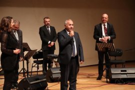 Karşıyaka Halk Eğitimi Merkezi Müdürü Suat Korkmaz tarafından Solist Birkan Balcı'ya ve Emeği geçen öğretmenlerimizden Nermin Üstünbaş'a çiçek buketi takdim edildi.