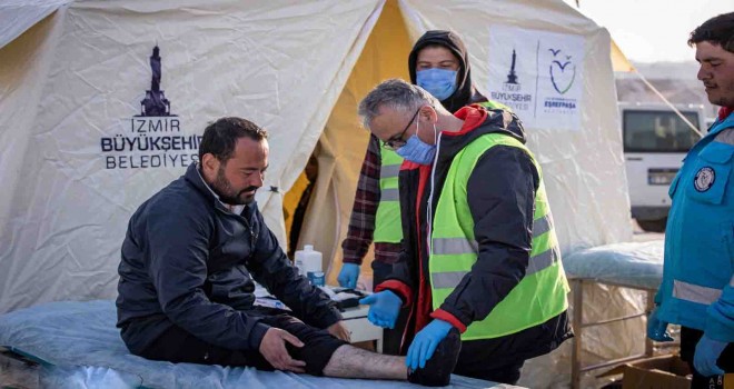 Çadır kentteki sağlık durumu hakkında bilgi veren Eşrefpaşa Hastanesi Enfeksiyon Hastalıkları Uzmanı Öner Özer, “Depremzedelerin sağlığını korumak için buradayız. Salgın hastalıklar en çok yiyecek içecek gibi gıda yoluyla ve yakın temasla bulaşıyor. Fakat aldığımız önlemler sayesinde kış döneminde oluşan normal enfeksiyonlar var. Gıda konusunda belediyemiz bütün aşevi prosedürlerini uyguluyor. Ortak hijyenik bir yemek dağıtım sistemi kuruldu. Bunların dışında daha çok kronik rahatsızlıklar ve psikolojik travmalarda artış var. Bu yüzden de gerekli önlemleri alıyoruz” ifadelerini kullandı.