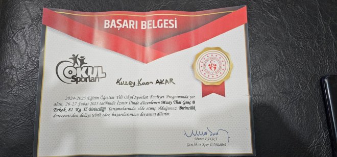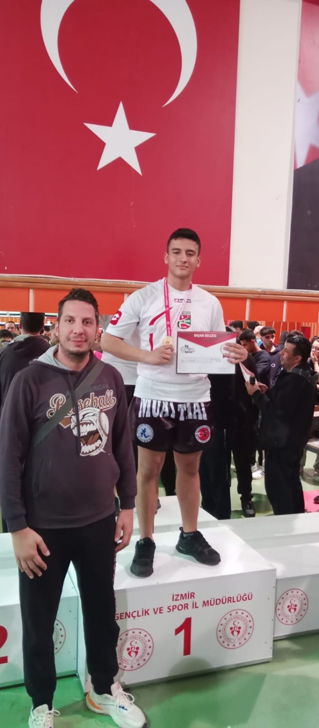 Atatürk Stadı Boks Salonunda yapılan İzmir Liseler MuayThai Şampiyonasında Karşıyaka Lisesi adına B Genç 81 kiloda ringe çıkan Bostanlısporlu genç sporcu başarılı maçlardan sonra şampiyonluğu elde ederek kürsüde altın madalyayı boynuna takti.