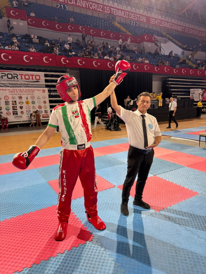 İzmir Halkapınar Spor Salonunda yapılan Şampiyonada Türkiye’nin dört bir yanından gelen kick boks sporcuları mücadele etti. 74 Kiloda yarıfinale kadar harika maçlar çıkaran Bostanlısporlu Sarp Erbaş, final öncesi yaşadığı şansızlıkla finale çıkamadı ve üçüncülük maçını kazanarak “Türkiye Üçüncüsü” olarak madalya aldı.