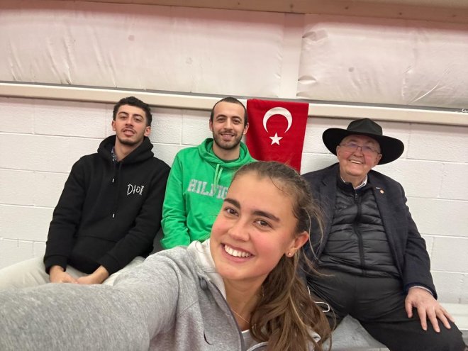 Semra Aksu’nun final maçını torunları ile birlikte izleyen Hüsnü Oral, “gururlandık. Karşıyakalı sporcu ile mutlu olduk. Kendisinin başarısını, şampiyonluğunu dostlarımızla beraber akşam yemeğinde kutladık. Hepimiz gururlandık, dostlarımıza duyururuz. Amerika Kuzey Karolina Eyaletinde Baş Şehri Raleigh’de yapılan Uluslararası Bayanlar Tenis Şampiyonasında, önceki Atletizm Federasyonu Asbaşkanı Ali Aksu ve Dr. Aylin Çeçen Aksu’nun kızı , önceki Atletizm Federasyonu Başkanı, Rüzgarın Kızı, Rekorları Kırılamayan Semra Aksu’nun yeğeni milli tenisçimiz Semra Aksu, yarı final maçını kazanarak finale kaldı. Kendisini damadım Murat, torunlarım Can ve Cem Öztamur ile ellerimizde Türk Bayrağımız ile seyrettik. Zaferini doyasıya kutladık” dedi.