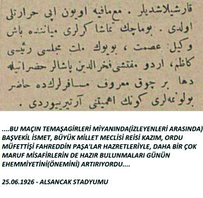 Bildiğiniz üzere 1926 yılı Kaf Sin Kaf için çok önemli bir yıldır. 13 Ekim 1925 tarihinde, Atatürk’ün kulübümüzü ilk ziyaretinde şeref defterimize buyurdukları: