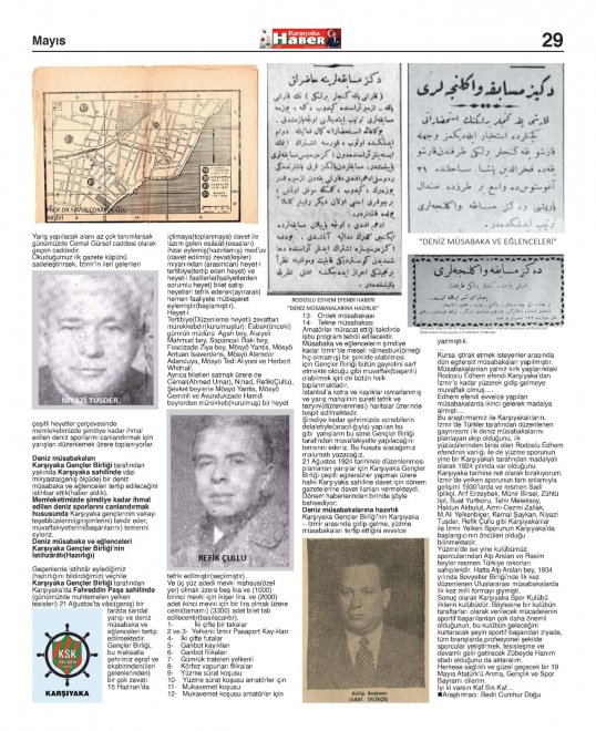 Memleketimizde şimdiye kadar ihmal edilen deniz sporlarını canlandırmak hususunda Karşıyaka gençlerinin vakayı teşebbüslerini(girişimlerini) takdir eder, muvaffakiyetlerini(başarılarını) temenni eyleriz.
