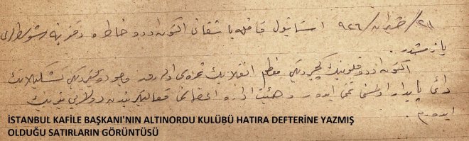 “21 Haziran 926 İstanbul kafile başkanı Altınordu hatıra defterine şu sözleri yazmıştır;