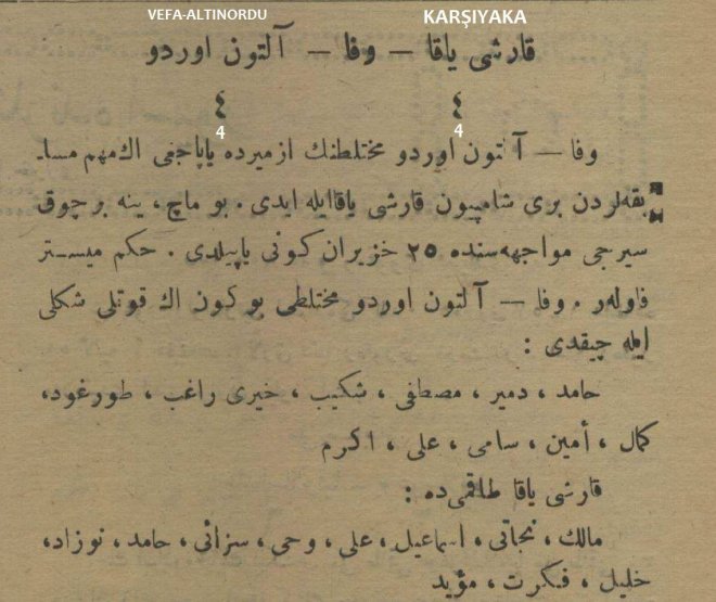 Vefa/Altınordu Muhteliti’nin İzmir’de yapacağı en mühim müsabakalardan biri şampiyon Karşıyakalılar idi.