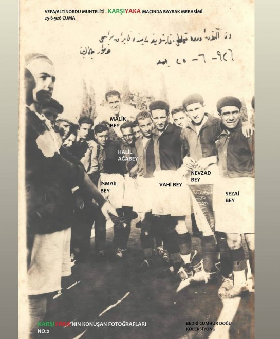 Karşıyaka’nın Konuşan Fotoğrafları’nda bu ay, şahsi koleksiyonumuzda bulunan, Türk spor tarihimizin ve İstanbul’un en eski spor kulüplerinden, İttihad ve Terakki tarafından “Progrés” adıyla 1909 tarihinde kurulmuş olan Altınordu ve yine 1908 yılında kurulan Vefa İdman Yurdu muhteliti (karması)’nın Haziran 1926 tarihinde İzmir’e yapmış oldukları seyahat ve bu seyahatta karşılaşmış olduğu Kaf Sin Kaf maçından önce “bayrak merasimi” sırasında çekilmiş fotoğraf ve bu fotoğrafın bizlere anlattığı detayları ilk kez aktaracağız.
