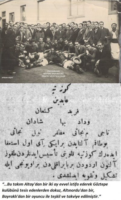 “…Bu takım Altay'dan bir iki ay evvel istifa ederek Göztepe kulübünü tesis edenlerden dokuz, Altınordu'dan bir, Bayraklı'dan bir oyuncu ile teşkil ve takviye edilmiştir.”
